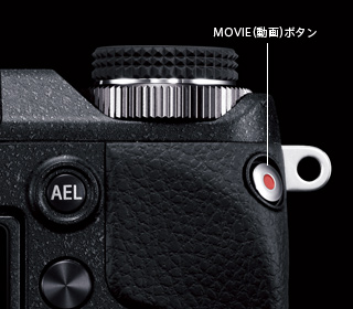 動画撮影のスタート・ストップは、専用のMOVIE(動画)ボタンを押すだけ。メニュー画面から操作する必要がなく、写真撮影中でも、撮りたいときにいつでもフルハイビジョン動画を撮影できます。また、P・A・S・Mの露出モードでも動画撮影を楽しめます。