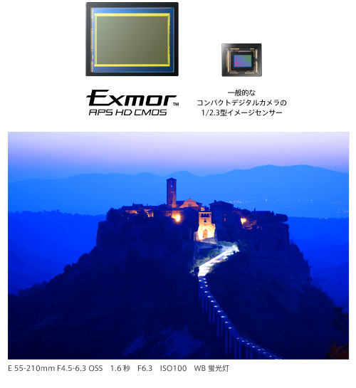 *1 レンズ交換式デジタルカメラにおいて。CIPA測定条件 標準ズームレンズE 18-55mm F3.5-5.6 OSS装着時、シャッターボタンを押しこんでから露光開始までの時間。2011年8月広報発表時点、ソニー調べ
