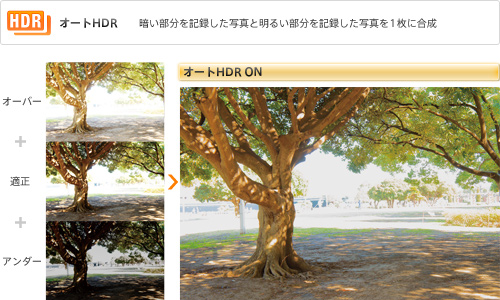 見たままのイメージを再現する、「オートHDR(ハイダイナミックレンジ)」機能