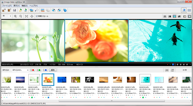 まるでライトボックスでスライドを選ぶ感覚で、写真を閲覧・セレクトできるソフトウェアです。写真の拡大表示やサムネイル表示が同時にでき、拡大画像を複数枚同時に閲覧できます。また、RAWデータも高速に拡大表示し、画像スクロールもスムーズです。写真ごとに評価付けして、たくさんの写真をかんたんに整理できます。
