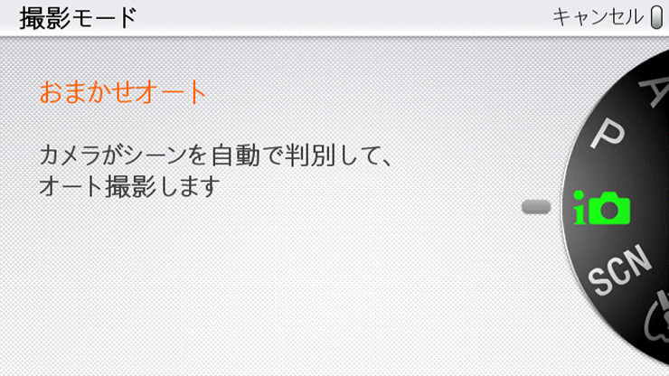 フルオートの簡単撮影機能のほか、本格的にクリエイティブな意図を反映できる露出モードを搭載。シャッタースピードと絞り値を自動設定する「プログラムオート(P)」をはじめ、「絞り優先(A)」「シャッタースピード優先(S)」「マニュアル(M)」が設定可能です。絞りやシャッタースピード値は、コントロールホイールを回転させるだけで変更できます。