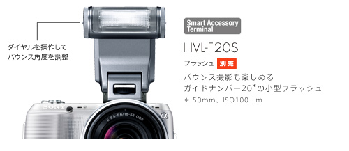 ボディに合わせてデザインされた小型フラッシュを別売。フラッシュを起こすだけで電源オン、倒せばオフの簡単操作。発光部のダイヤルを操作してバウンス角度を調整でき、バウンス撮影を手軽に楽しめます。また、カメラから電源供給するため、電池も不要です。発光量はガイドナンバー20(*1)。照射角は18mm(*2)(ウルトラワイドコンバーター装着時の画角)をカバーしています。