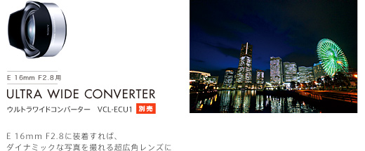 薄型広角レンズや、光学式手ブレ補正機能を内蔵したズームレンズ、近接撮影に便利なマクロレンズなど、描写にこだわったさまざまなレンズをラインアップ。なかでも、世界中のフォトグラファーが賞賛する「カールツァイスレンズ」なら、ワンランク上の写真表現も可能。また、薄型広角レンズに装着して使えるフィッシュアイコンバーターやウルトラワイドコンバーターもあり、レンズ交換による多彩な表現が楽しめます。