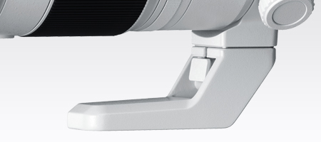 三脚にレンズを装着した状態から、素早く手持ち撮影に切り換えられる着脱式の三脚座を採用。縦横構図を容易に変更できるリボルビング機構や、レンズの脱落を防止するロック機能を備えています。さらに、三脚座の突起部を分離できるため、持ち運び時の収納性も向上します。