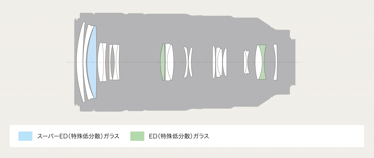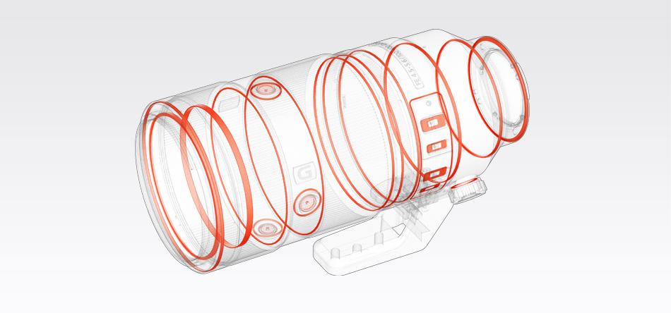 スーパーED(特殊低分散)ガラスとEDガラスを効果的に配置し、望遠レンズで発生しがちな軸上色収差を抑制。加えて、黒が締まったヌケの良い描写を実現するソニー独自のナノARコーティングなどの採用により、ズーム・フォーカス全域において画面周辺部まで鮮明に描写します。