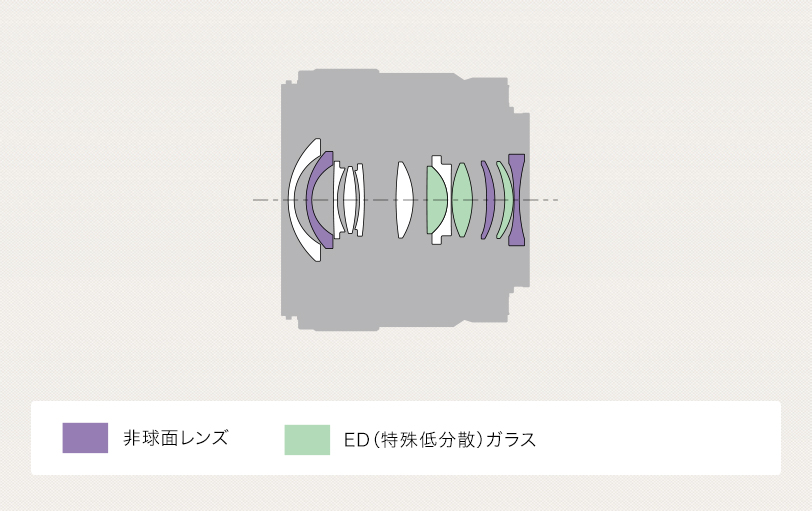 フォーカス時にレンズ全長が変わらないインターナルフォーカシング方式を採用。使い勝手がよく、例えば被写体にぐっと寄った構図や狭い場所での動画撮影などにもフレキシブルに対応、表現の幅を広げます。