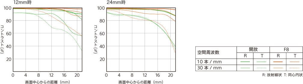 非球面レンズ4枚を含む新規光学設計により、広角側で発生しやすい諸収差を抑制し、Gレンズの名にふさわしい高い解像性能を実現しました。