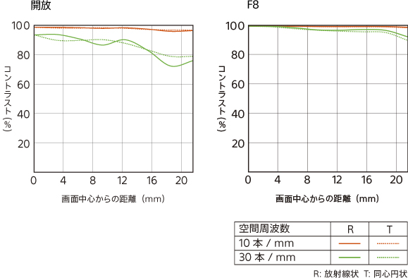 色収差を大幅に除去するED(特殊低分散)ガラス2枚と、より強い色収差補正力を有し、開放からコントラストの高い描写を実現するスーパーEDガラス1枚を効果的に配置。色収差を良好に補正し、画面周辺での色にじみを抑制します。