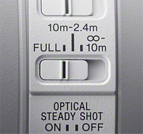 あらかじめ合焦する範囲を限定し、迅速なフォーカシングを可能にするフォーカスレンジ切り換えスイッチを搭載。FULL/10m-2.4m/∞-10mの3つから範囲を選択可能です。