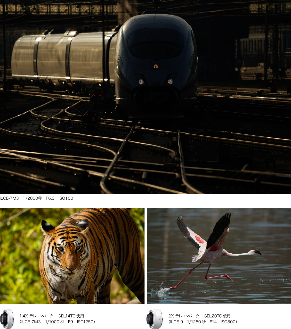 別売の高性能テレコンバーター(1.4倍/2.0倍)に対応し、最長1200mm(APS-Cカメラでは最長1800mm相当)の望遠域で撮影可能。テレコンバーター装着時も高速・高精度なAF性能を発揮し、レンズの高い描写性能を最大限に引き出します。