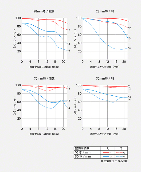 非球面レンズ3枚、EDレンズ1枚を効果的に配置することで、レンズの球面収差や歪曲収差を良好に補正。ズーム全域で絞り開放時から、にじみが少なくコントラストの高い画質で撮影できます。