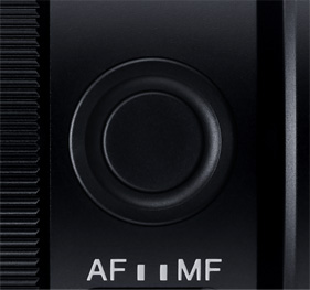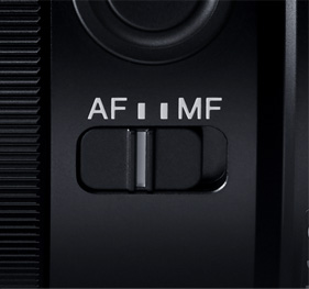 レンズ側のスイッチでAF/MFの切り換えが可能。ファインダーから目を離すことなく、手元で瞬時に切り換えられ、撮影中も快適に操作できます。