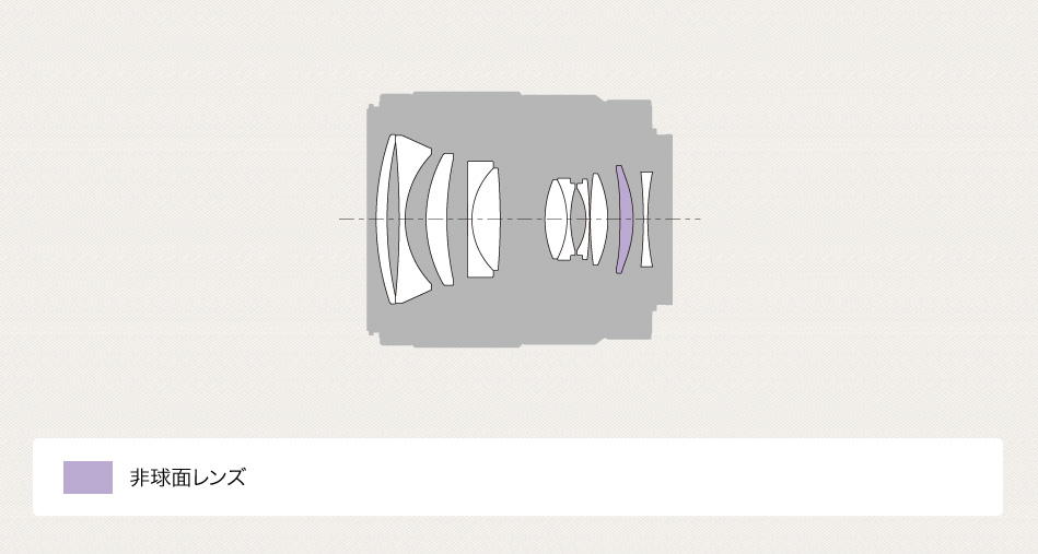 フォーカス時に鏡筒の長さが変わらないインターナルフォーカシング方式を採用。これにより、最短撮影距離を短縮化できるとともに、レンズの前玉が回転しないため、偏光フィルター使用時の操作性にも優れています。また、フォーカス時の画角変動を抑制します。