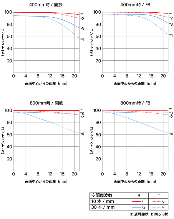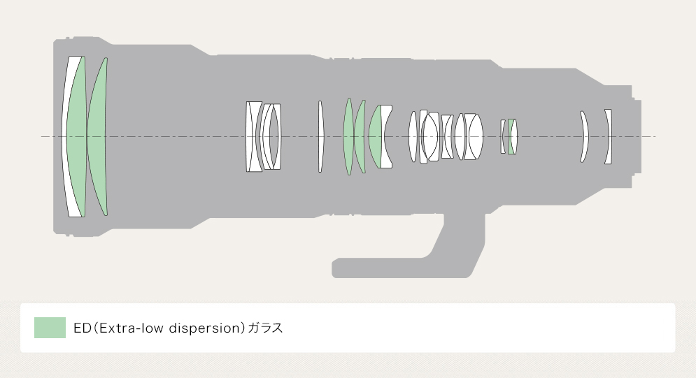 超望遠域で発生しがちな色収差などの諸収差を、ED(Extra-low Dispersion)ガラス6枚を含むエレメントの効果的な配置により抑制。画面中心から周辺部分まで、高い解像性能を実現しました。加えて、フレア・ゴーストも効果的に抑制し、球面収差を最適化することで、Gレンズならではの自然でやわらかなぼけ描写が可能。11枚羽根の円形絞りにより、少し絞った場合でも点光源のぼけを円形に保ちます。
