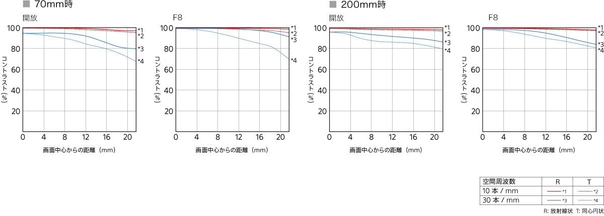 0.01ミクロン単位という高い精度で表面を製造管理している超高度非球面XA(extreme aspherical)レンズや、ED(特殊低分散)非球面レンズを採用した最新の光学設計で、焦点距離70mmから200mmのズーム全域で開放F値2.8から画面周辺部まで緻密に描写する高い解像性能を実現しています。