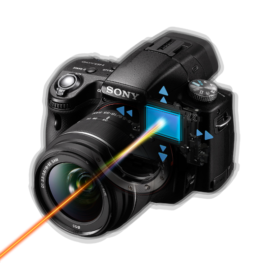 ボディ本体に手ブレ補正機能を内蔵し、広角から望遠、マクロレンズまで、すべてのαレンズで手ブレを抑えます。しかも補正効果はシャッタースピード換算で約2.5-4段分あるので、高感度ISOと組み合わせれば、手ブレや被写体ブレが起こりやすい暗いシーンでも、三脚やフラッシュなしで撮影できます。