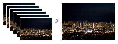 シーンセレクションの「手持ち夜景」モードは、高速連写した6枚の画像を重ね合わせることで、手ブレやノイズを抑えた、鮮やかな夜景を三脚なしで高感度で撮影できます。