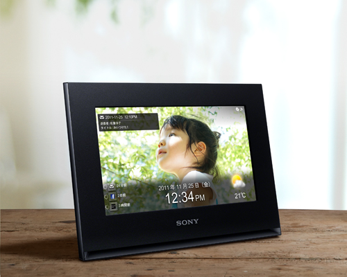 メモリーカードを差しこむだけで、フォトスタンドのように写真を楽しめるソニーのデジタルフォトフレーム(別売)。写真が自動的に切り替わり、思い出の写真がインテリアの仲間になります。さらに写真を入れてプレゼントすれば、家族や友人への贈りものにもぴったりです。