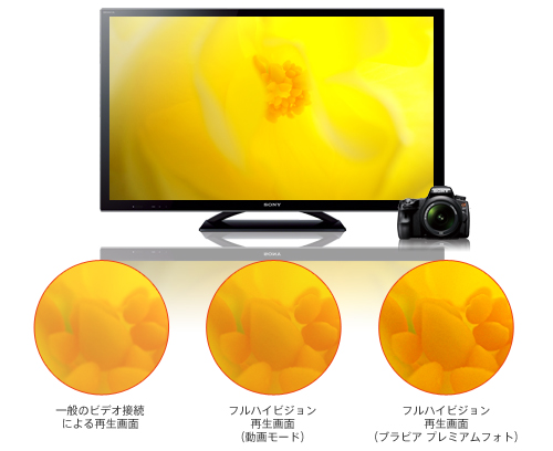 撮った写真を「ブラビア プレミアムフォト」対応の〈ブラビア〉に映し出せば、写真本来の持つ自然な階調表現、豊かな色彩を余すところなくフルハイビジョンの高画質で再現できます。