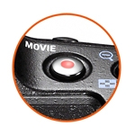 撮影のスタート・ストップは、専用のMOVIE(動画)ボタンを押すだけ。メニュー画面から操作する必要がなく、写真撮影中でも、撮りたいときにいつでもフルハイビジョン動画を撮影できます。撮影中はカメラが被写体にピントを合わせ続け、明るさも自動で調整します。