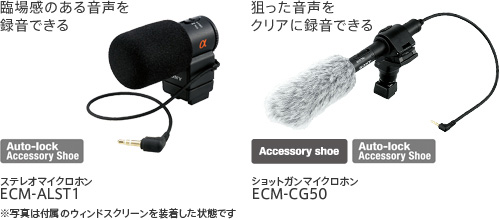 ソニーは音質にもこだわり、小型ボディに音声記録用のステレオマイクと再生用スピーカー(モノラル)を内蔵。さらに別売のマイクロホンを装着すれば、より高音質な音声を録音でき、臨場感たっぷりのフルハイビジョン映像作品に仕上げられます。