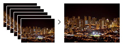 シーンセレクションの「手持ち夜景」モードは、高速連写した6枚の画像を重ね合わせることで、手ブレやノイズを抑えた、鮮やかな夜景を三脚なしで高感度で撮影できます。