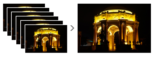 ※ 被写体・背景の一部が動いたり、点滅発光等を行う場合、画像合成処理が正確に行われない場合があります