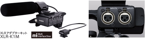 プロ用オーディオ機器の標準形式XLR端子に対応。別売のXLRアダプターキット(XLR-K1M)を接続すれば、高性能マイクやミキサーなどXLR端子機器からのライン入力が可能です。また、2chの入力をそれぞれ独立して設定でき、より本格的な動画撮影を実現します。
