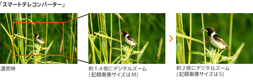 * 記録画像サイズは約1.4倍時はMサイズあるいはSサイズ、約2倍時はSサイズに自動設定されます