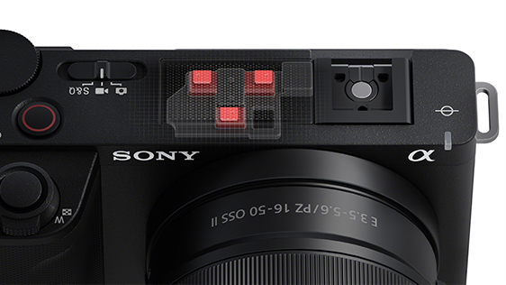 デジタルオーディオインターフェース対応の、マルチインターフェース(MI)シューを搭載。音声をデジタル信号のままダイレクトにカメラに伝送し、劣化のない高音質録音を実現します。従来のMIシュー接続と同様にケーブルフリー・バッテリーフリー仕様のため、動画撮影時の自由度が上がります。また、デジタルオーディオインターフェースに対応したマルチインターフェース(MI)シューを介して、いずれも別売のショットガンマイクロホン「ECM-B1M」「ECM-B10」やワイヤレスマイクロホン「ECM-W2BT」に対応。高品質なデジタル録音が可能です。