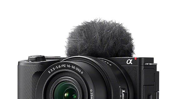 屋外での撮影では強風による風切り音や、さまざまな環境音により音声が聞こえにくくなることがあります。そこでVLOGCAM ZV-E10 IIには、高い集音性能を持つインテリジェント3カプセルマイクを搭載。カメラが被写体を認識して自動的に内蔵マイクの指向性を前方または全方位に切り換え、さまざまなシーンで主役の声をクリアに録音できます。