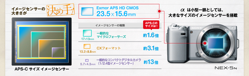 イメージセンサーの大きさが高画質の証 デジタル一眼、「損しない」キレイの決め手!|デジタル一眼カメラ"α"(アルファ) [Eマウント] | デジタル一眼カメラα(アルファ) | ソニー