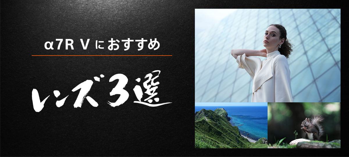 【α7R Vユーザーに<1本目にオススメしたい>レンズ3選】、【α7R Vユーザーに<風景撮影にオススメな>レンズ3選】、【α7R Vユーザーに<人物撮影にオススメな>レンズ3選】、【α7R Vユーザーに<動物撮影にオススメな>レンズ3選】、【α7R Vユーザーに<動画撮影にオススメな>レンズ3選】を参考にぜひ合うレンズを選んでみてください。