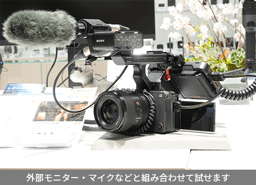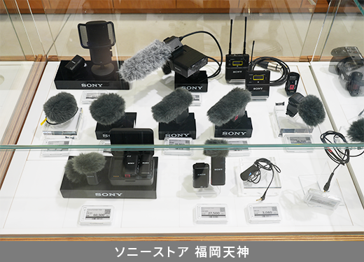 マイクやフラッシュなどのアクセサリーも取り揃えています。「ECM-VG1」「ECM-778」など、プロ用のマイクも展示・販売しております。ご自身のαに装着してお試しいただくことも可能ですので、ぜひお気軽にアクセサリーもお試しください。