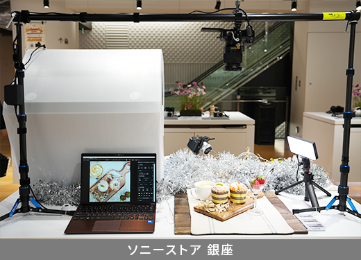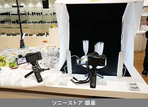 店内には被写体もご用意しており、オートフォーカスの性能やぼけ感の違いなどもご体験いただけます。ソニーストア 銀座では、物撮り用のセットもご用意していますので、商品レビュー動画の作成やフリマアプリへの出品を想定した撮影もお試しいただけます。ぜひ、じっくりとαでの撮影体験をお楽しみください。