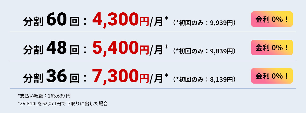 「ずっとこのカメラを使い続ける予定だけど、月の支払額を抑えて購入したい」