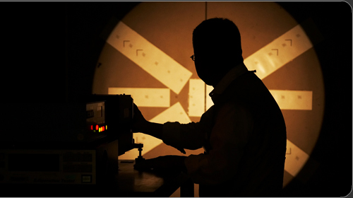 被写体のコントラストをどの程度再現できるかを独自開発のMTF試験機で測定します。レンズ性能を総合的に評価できます。 レンズによっては投影解像力でも確認します。