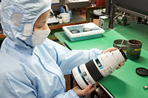 Gの300mmを担当しています。絞り羽根の組立からMRセンサの組み込み、内筒や鏡筒の組立、それぞれの調整・検査、完成まで…。 一人で受け持ちますからやりがいがあります。