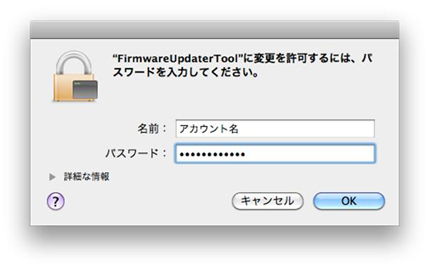 - 4. カーネル機能拡張のロードが必要なため、最初に変更許可が求められます。管理者アカウントでログインしたときのパスワードを入力してください。