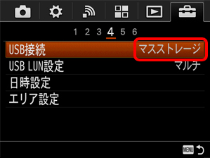 「マスストレージ」以外の設定になっている場合は、「マスストレージ」に設定してください。