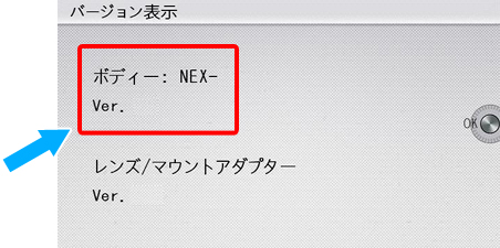 ボディーのバージョンの数字が、「本体アップデート情報」に掲載されている、該当案件の「アップデート後のソフトウェアバージョン」と同じである場合は、ソフトウェアの更新(アップデート)は完了しています。