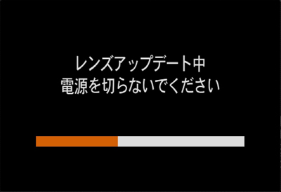 カメラに「レンズアップデート中」と表示され、アップデート中(約30秒)は進行バーが表示されます。
