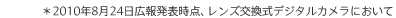 *2010年8月24日広報発表時点、レンズ交換式デジタルカメラにおいて