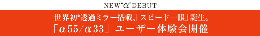 NEWαDEBUT 世界初*透過ミラー搭載、「スピード一眼」誕生。「α55/α33」ユーザー体験会開催