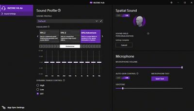 PCソフトウェア「INZONE Hub」を使用することで、INZONE H6 Air用に開発されたRPG/アドベンチャー向けイコライザーの設定や、イコライザー調整、立体音響の設定など、PCでゲームをプレイする際のさまざまなカスタマイズが可能です。(*)