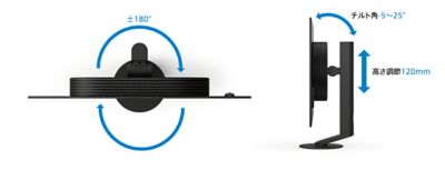 ±180°回転のスイーベル(水平)、高さ・角度の幅広い調整が可能で、ひとりひとりのプレイスタイルに合わせたポジショニングが可能です。