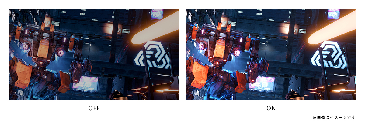 明るい場所でも白飛びを軽減しつつ、暗所の視認性を向上させ、敵を見つけやすくなるよう調整が可能です。