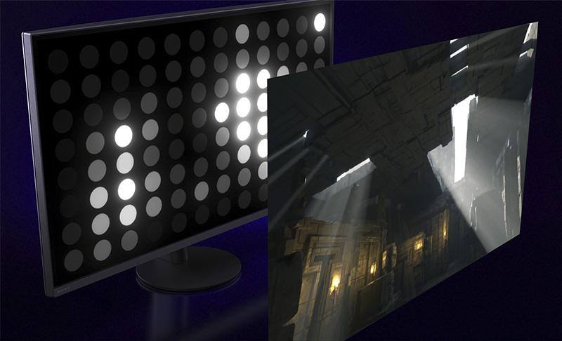 LEDバックライトを液晶パネル下に配置し、映像全体を小さなブロックに分けてコントロールすることで明暗のきめ細かな描写を可能にする「直下型LED部分駆動」搭載。これによりピーク輝度750cd/m2の明るさと、コントラスト比80,000:1の暗さ表現を実現。明るい部分でも暗い部分でも、より忠実に映像を表現でき、ゲームの世界への深い没入を可能にします。
