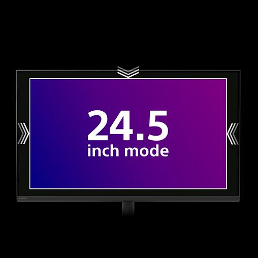 ディスプレイ表示サイズをeスポーツ大会で広く採用されている24.5インチに切り替え可能な「24.5インチモード」を搭載。表示位置はセンター(中央)またはボトム(下揃え)から選択でき、プレイスタイルに合わせてご使用いただけます。
