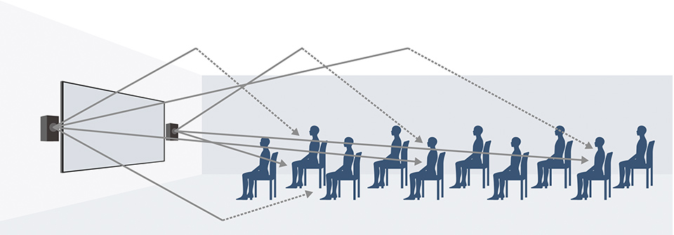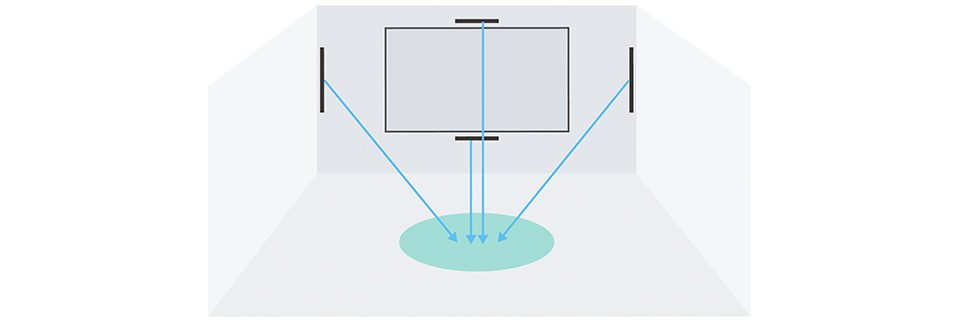 - 音は円筒状に(水平方向のみ)に拡がります。